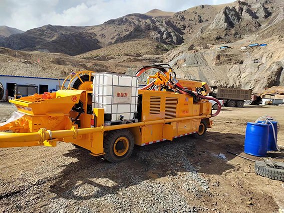 礦用柴油機濕式混凝土噴射車施工現(xiàn)場: