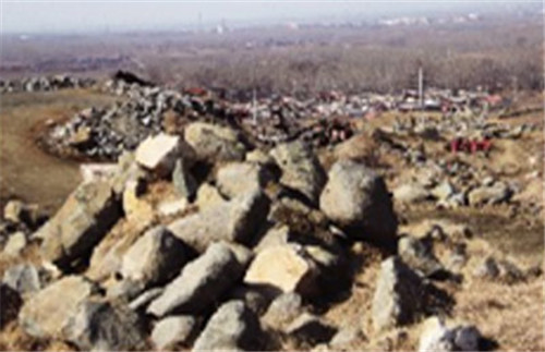記者沿著一條路進(jìn)入采石場看到,開采較規(guī)則的石頭被裝入容積1立方米的木框里,但更多的是,開采過后,在近百畝的地面上,高低不平地散落著大小不一的石頭,有些地方,因?yàn)橥谑^,形成10多米深的溝壑。
